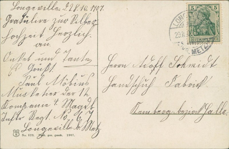 Alte Ansichtskarte aus Metz, gelaufen am 29.10.1907.