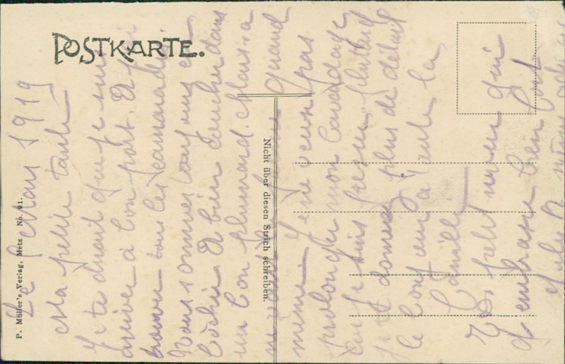 Alte Ansichtskarte aus Metz, beschrieben um 1919.