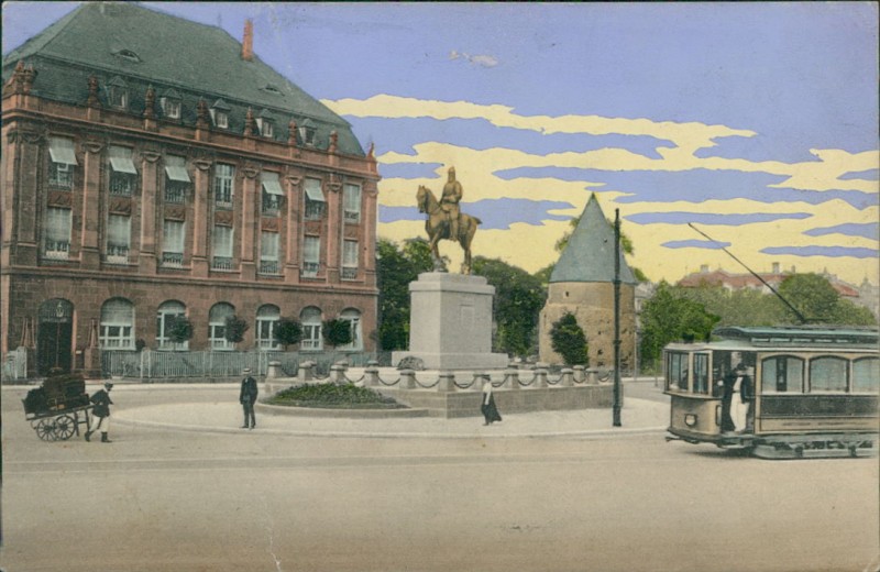 Kaiser-Friedrich-Denkmal mit Straßenbahn