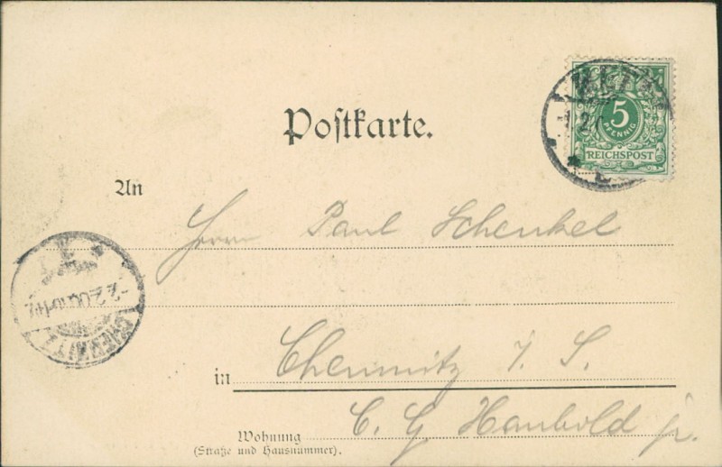 Alte Ansichtskarte aus Metz, gelaufen am 01.02.1900 von Metz nach Chemnitz. Ankunft in Chemnitz am 02.02.1900.