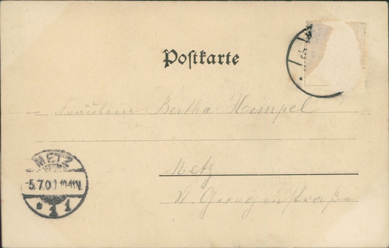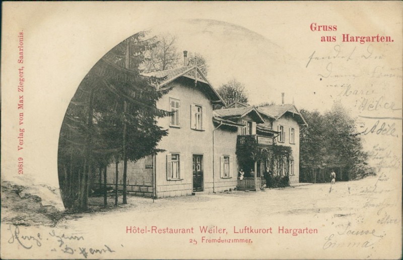 Alte Ansichtskarte aus Hargarten / Hargarten-aux-Mines, gelaufen am 05.07.1901.