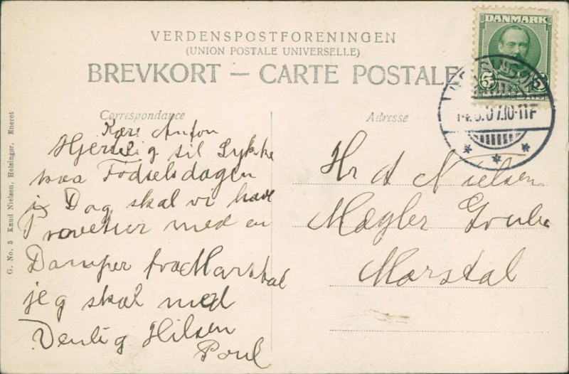 Alte Ansichtskarte aus Helsingør, gelaufen um 1907.