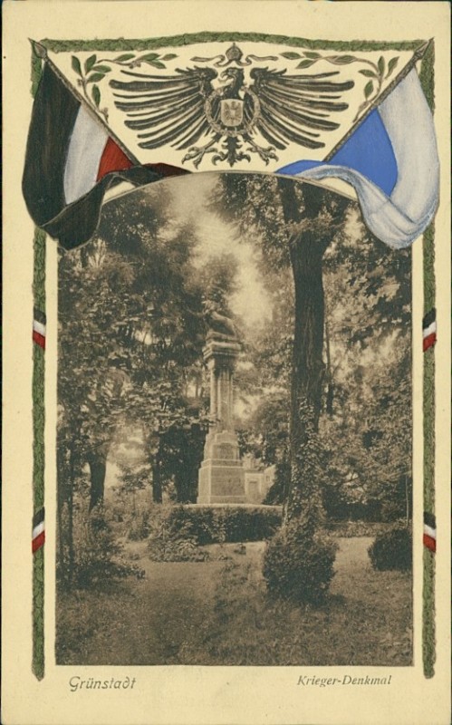Krieger-Denkmal mit Wappen und Reichsfahne