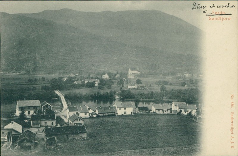 Alte Ansichtskarte aus Førde, ungebraucht, gedruckt um 1907.