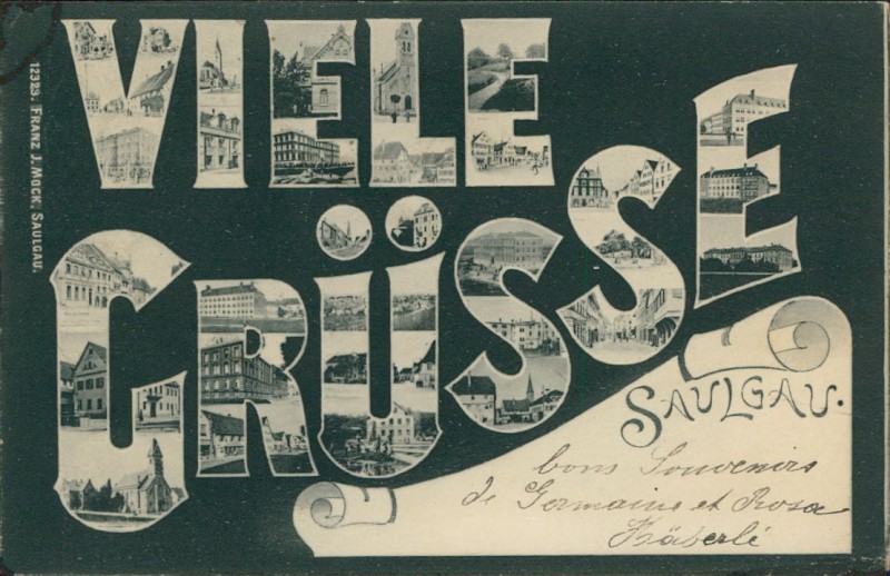 Alte Ansichtskarte aus Bad Saulgau, gelaufen am 08.08.1906 von Saulgau nach Paris.
