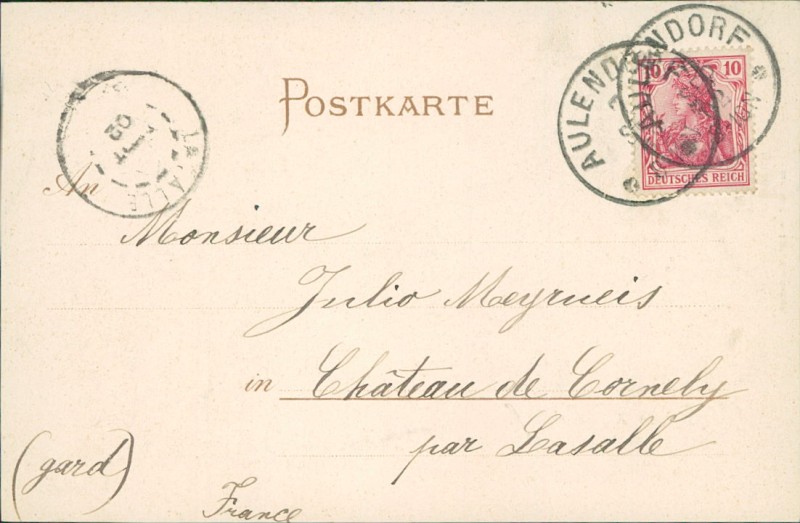 Alte Ansichtskarte aus Aulendorf, gelaufen um 1902.