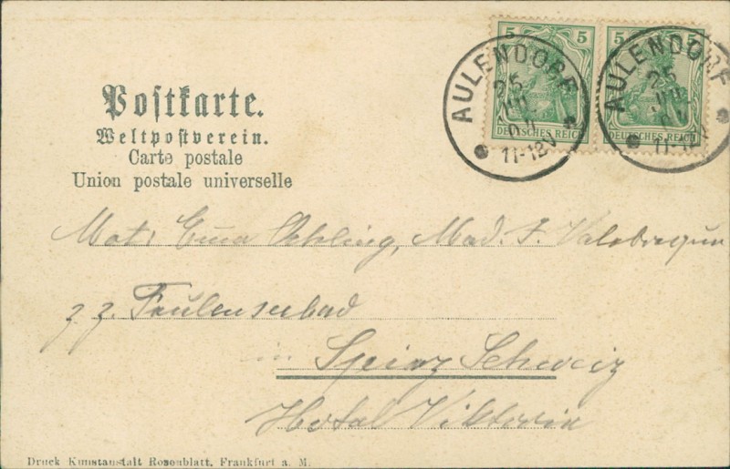 Alte Ansichtskarte aus Aulendorf, gelaufen am 25.07.1904.