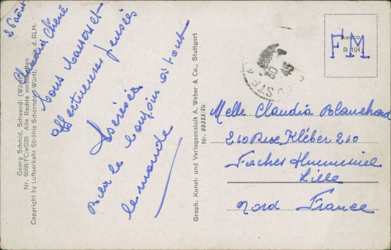 Alte Ansichtskarte aus Schwendi, gelaufen um 1945.