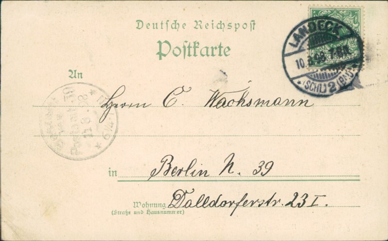 Alte Ansichtskarte aus Bad Landeck / Lądek-Zdrój, gelaufen am 10.08.1898 von Landeck (Schl) nach Berlin. Ankunft in Berlin am 11.08.1898.