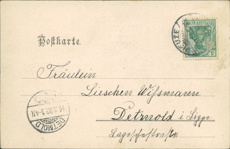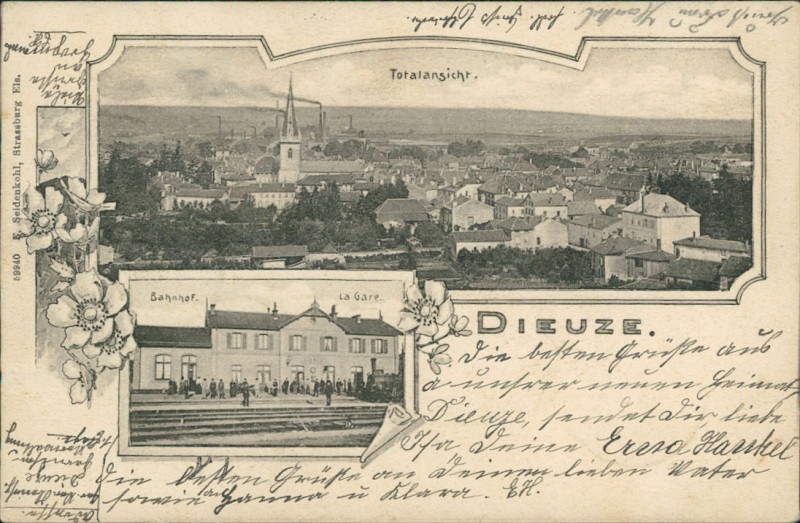 Alte Ansichtskarte aus Dieuze, gelaufen am 13.11.1902 von Dieuze nach Detmold.
