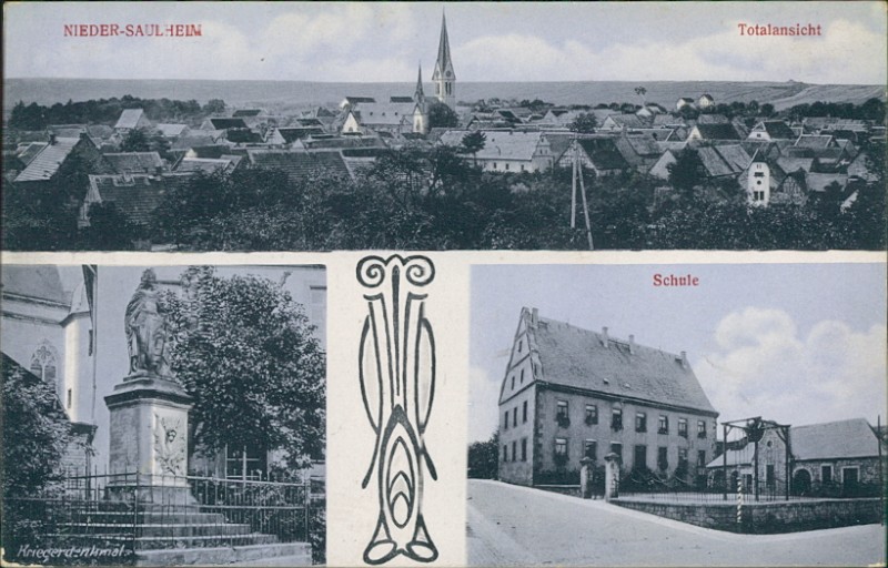 Alte Ansichtskarte aus Saulheim, beschrieben am 13.01.1918.