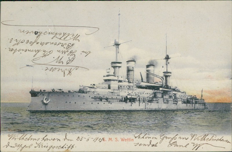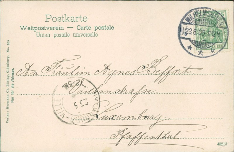 Alte Ansichtskarte, gelaufen am 23.06.1905 von Wilhelmshaven nach Luxemburg.