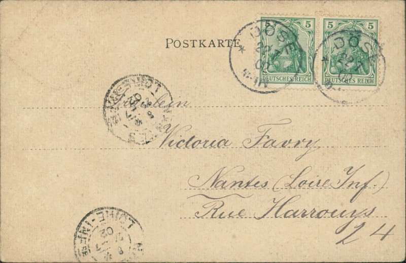 Alte Ansichtskarte aus Cuxhaven, gelaufen am 22.07.1902 von Döse nach Nantes.