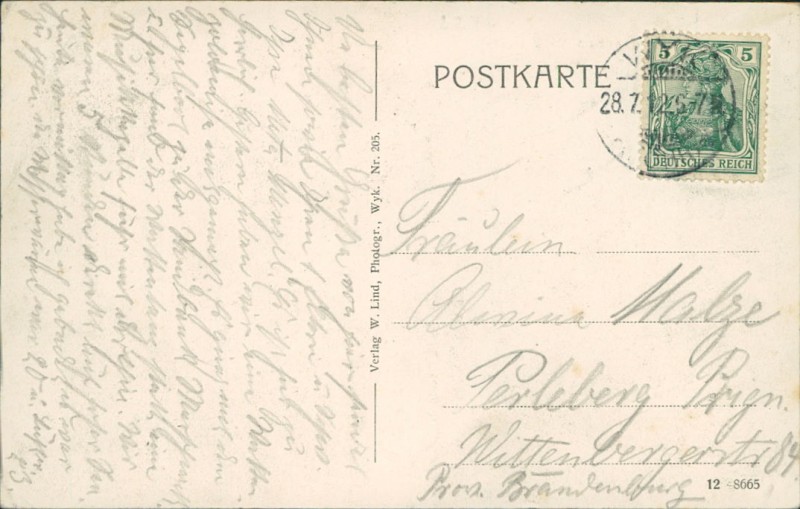 Alte Ansichtskarte aus Wyk auf Föhr, gelaufen am 28.07.1912 von Wyk nach Perleberg.