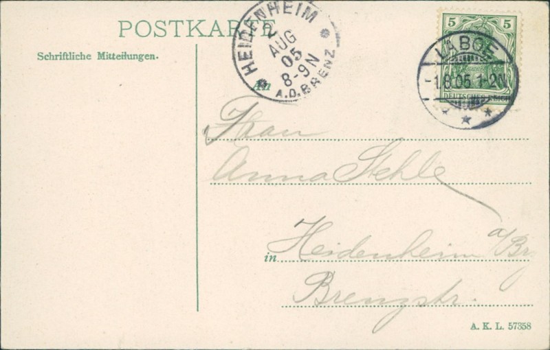 Alte Ansichtskarte aus Laboe (Probstei), gelaufen am 01.08.1905 von Laboe nach Heidenheim a/Brenz.