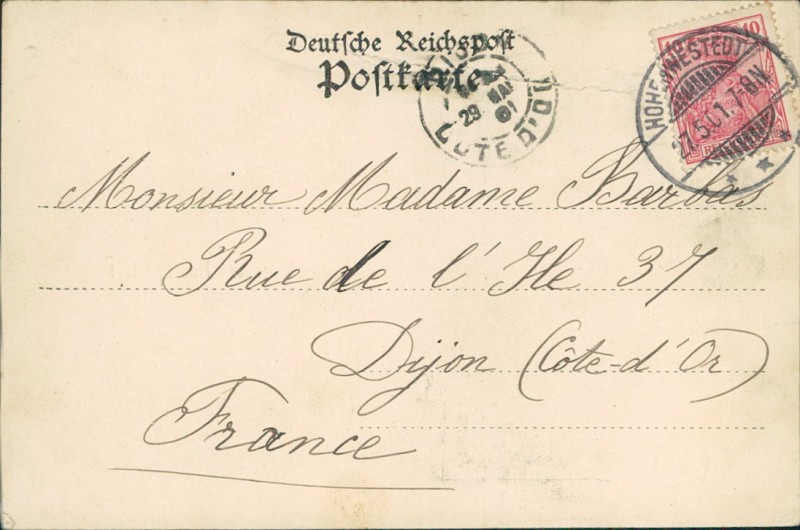 Alte Ansichtskarte aus Hohenwestedt, gelaufen am 27.05.1901 von Hohenwestedt nach Dijon.