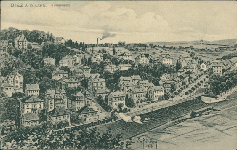 Alte Ansichtskarte aus Diez, ungebraucht, gedruckt um 1907.