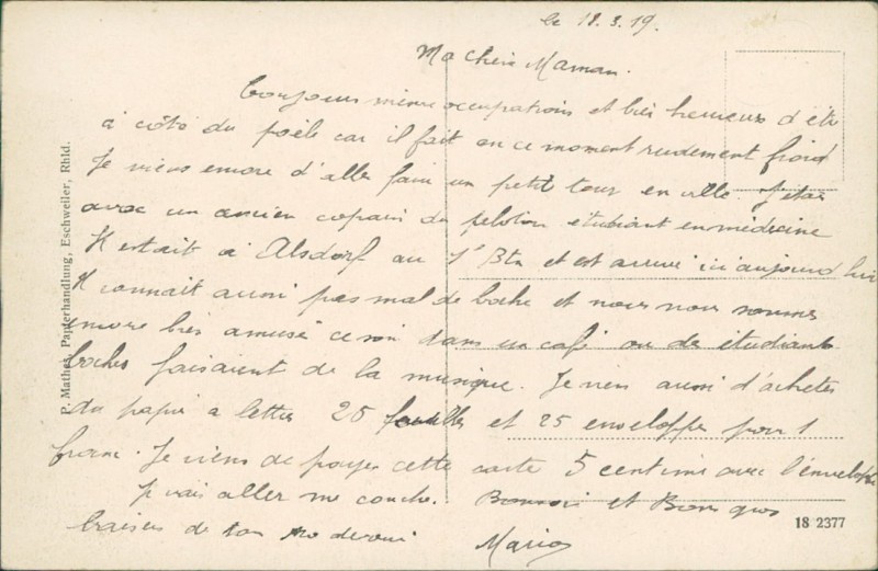 Alte Ansichtskarte aus Eschweiler, beschrieben am 18.03.1919.