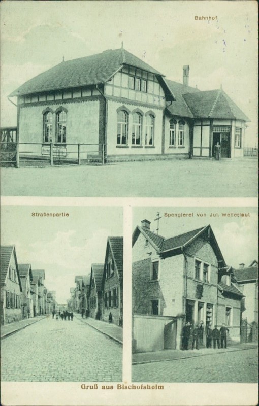 Bahnhof, Straßenpartie, Spenglerei von Jul. Wellerlaut