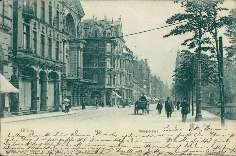 Alte Ansichtskarte aus Altona (Hamburg), gelaufen am 21.04.1902 von Altona nach Tönning. Ankunft in Tönning am 22.04.1902.