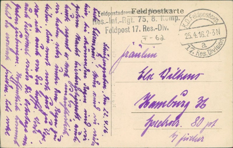 Alte Ansichtskarte aus Montigny-en-Gohelle, gelaufen am 25.04.1916.