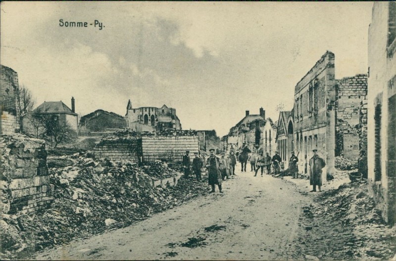Alte Ansichtskarte aus Sommepy-Tahure, gelaufen am 10.08.1915.