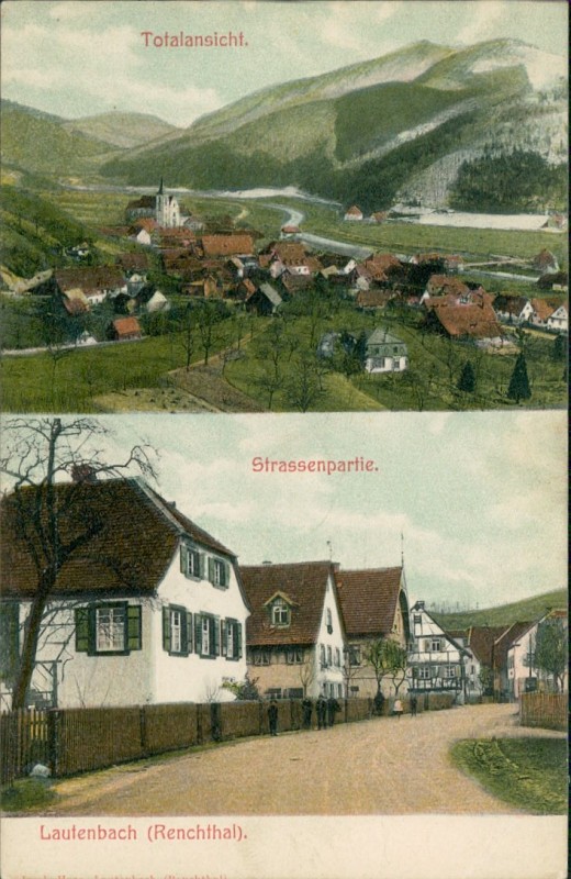 Alte Ansichtskarte aus Lautenbach, ungebraucht, gedruckt um 1907.