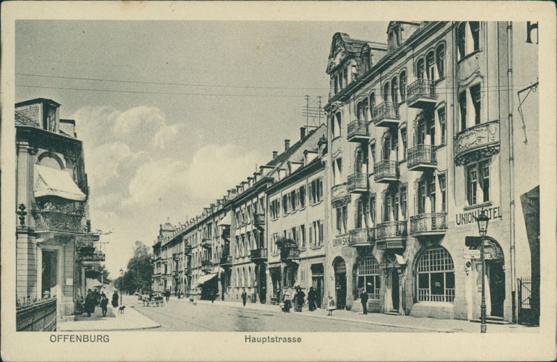Alte Ansichtskarte aus Offenburg, beschrieben um 1923.