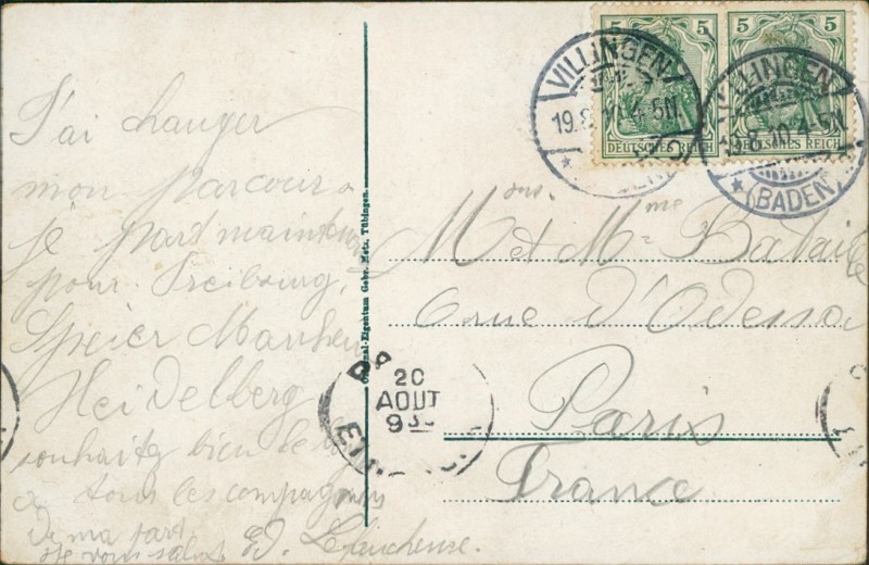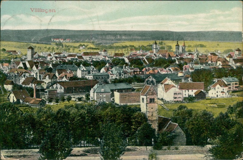 Alte Ansichtskarte aus Villingen-Schwenningen, gelaufen am 19.08.1910 von Villingen (Baden) nach Paris.