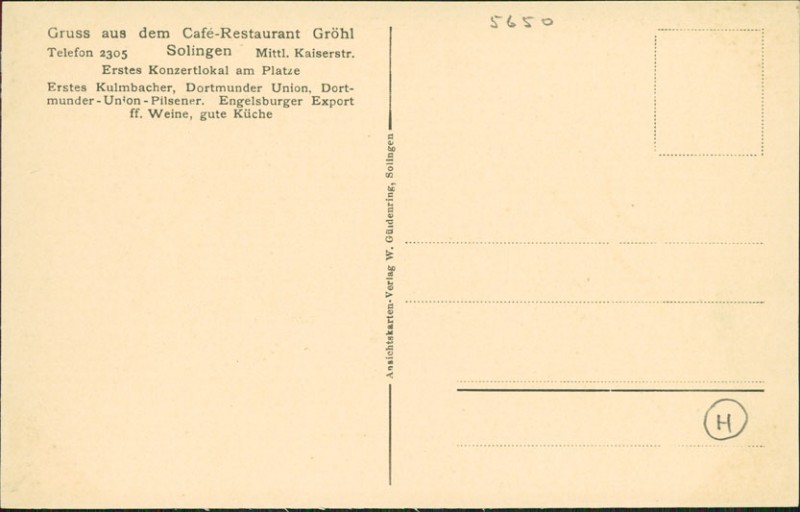 | Verlag | Ansichtskarten-Verlag W. Güldenring, Solingen |