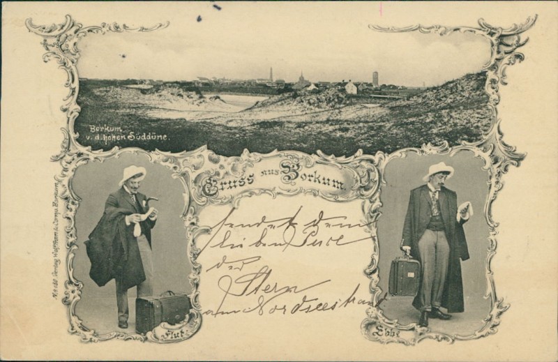 Alte Ansichtskarte aus Borkum, gelaufen am 21.08.1901 von Emden nach Strassburg. Ankunft in Strassburg am 22.08.1901.