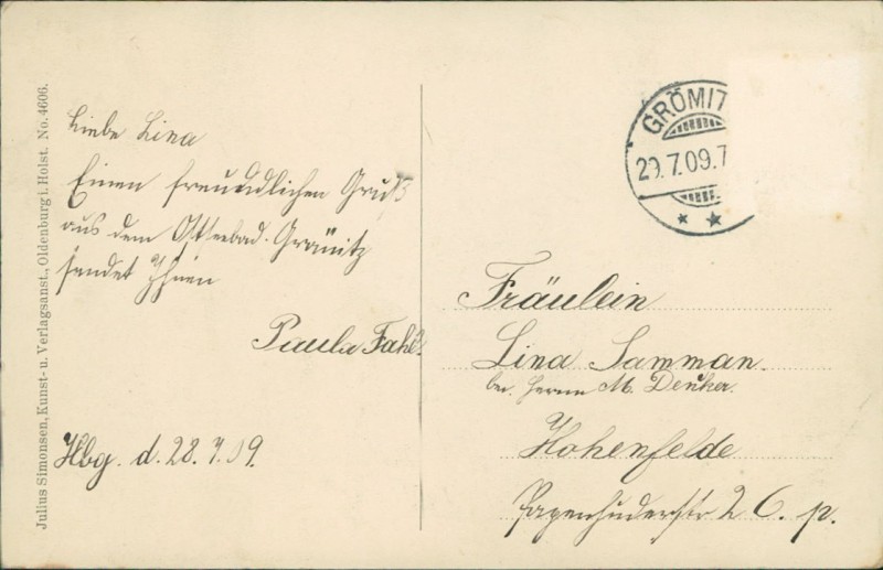 Alte Ansichtskarte aus Grömitz, gelaufen am 29.07.1909 von Grömitz nach Hohenfelde.