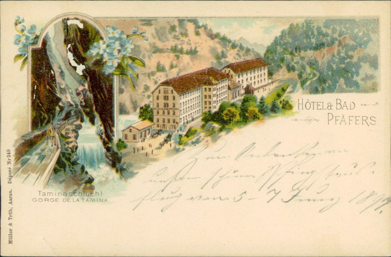 Alte Ansichtskarte aus Bad Pfäfers, ungebraucht, gedruckt um 1900.