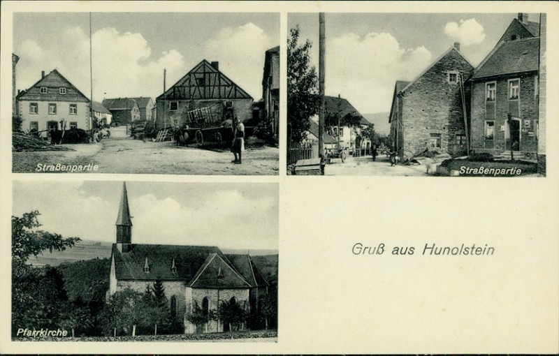 Alte Ansichtskarte aus Hunolstein, ungebraucht, gedruckt um 1937.