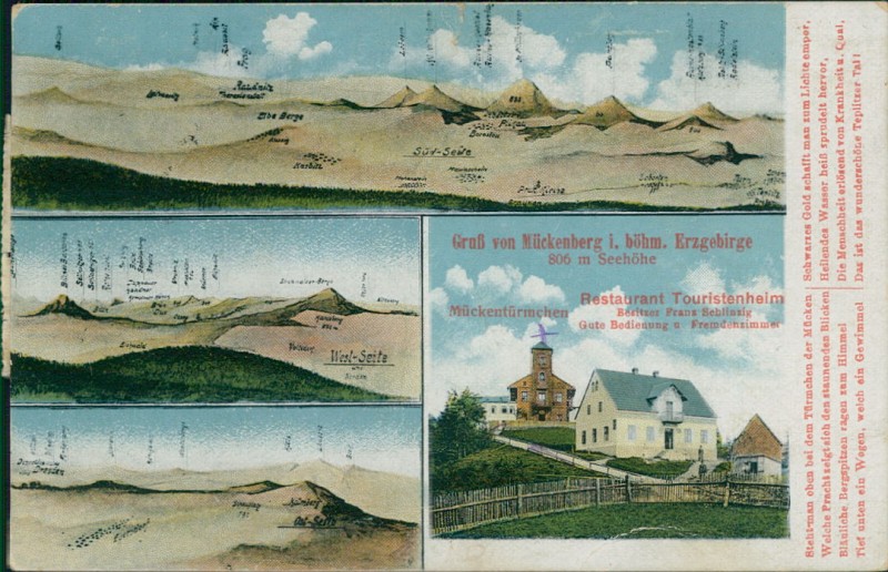 Alte Ansichtskarte aus Mückenberg / Komáří hůrka, gelaufen um 1924.