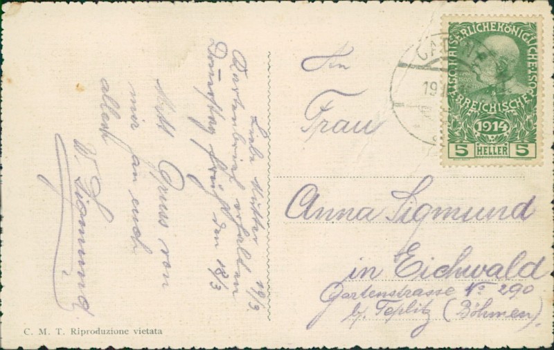Alte Ansichtskarte aus Trento / Trient, gelaufen um 1914.