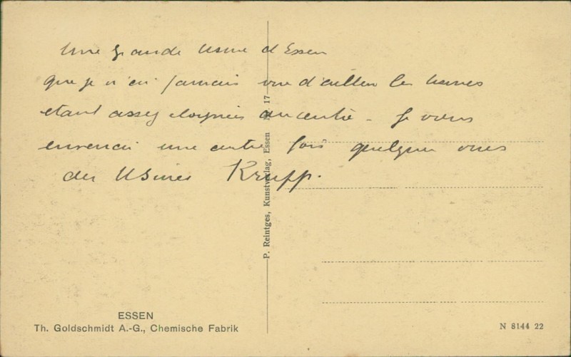 Alte Ansichtskarte aus Essen, beschrieben um 1919.