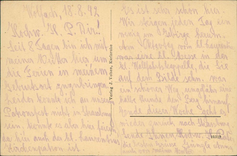 Alte Ansichtskarte aus Wolfach, beschrieben am 18.08.1942.