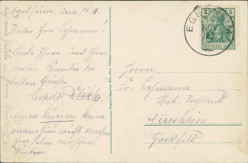 Alte Ansichtskarte aus Egesheim, gelaufen am 14.11.1912.