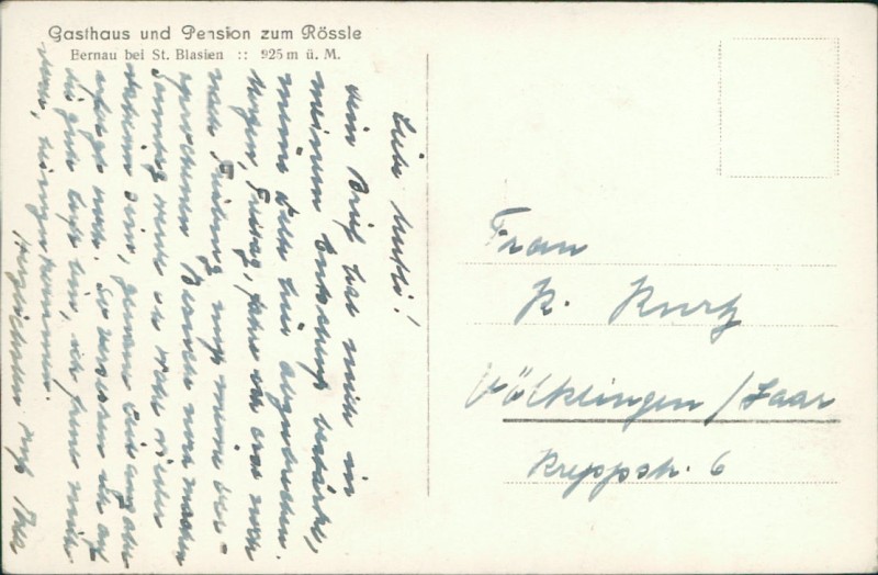 Alte Ansichtskarte aus Bernau im Schwarzwald, beschrieben um 1936.