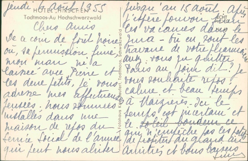 Alte Ansichtskarte aus Todtmoos, beschrieben um 1955.