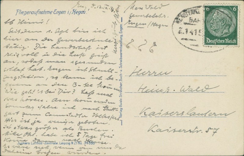 | Verlag | Guido Streicher, Buch- u. Schreibwarenhandlung, Engen |