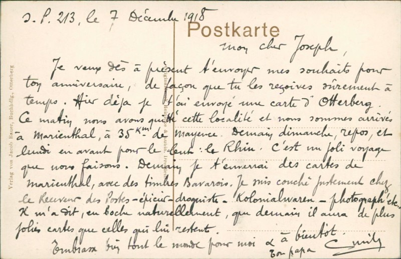 Alte Ansichtskarte aus Otterbach-Otterberg, beschrieben am 07.12.1918.