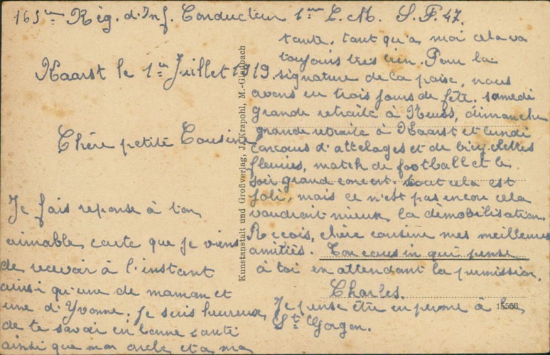 Alte Ansichtskarte aus Kaarst, beschrieben um 1919.