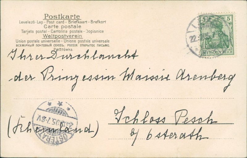Alte Ansichtskarte, gelaufen am 22.12.1905 von Lieser (Mosel) nach Osterath.