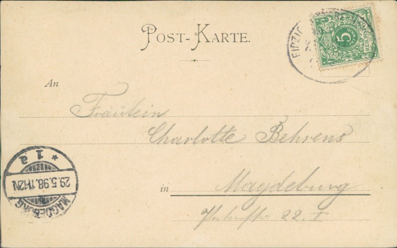 Alte Ansichtskarte aus Dessau-Roßlau, gelaufen um 1898.