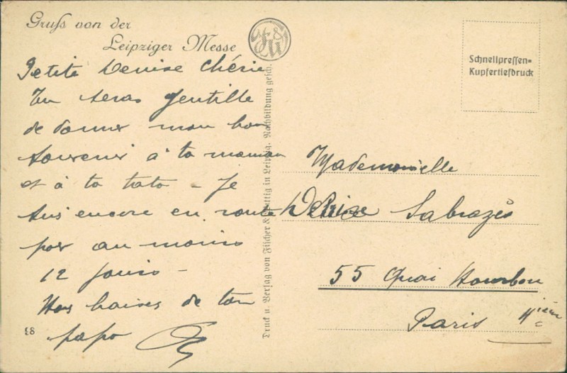 Alte Ansichtskarte aus Leipzig, beschrieben um 1930.