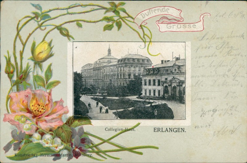 Alte Ansichtskarte aus Erlangen, gelaufen am 08.11.1901 von Erlangen nach Lichtenau. Ankunft in Lichtenau am 08.11.1901.