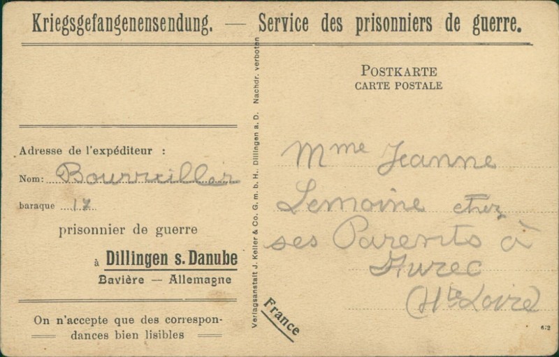 Alte Ansichtskarte aus Dillingen a.d.Donau, beschrieben um 1916.