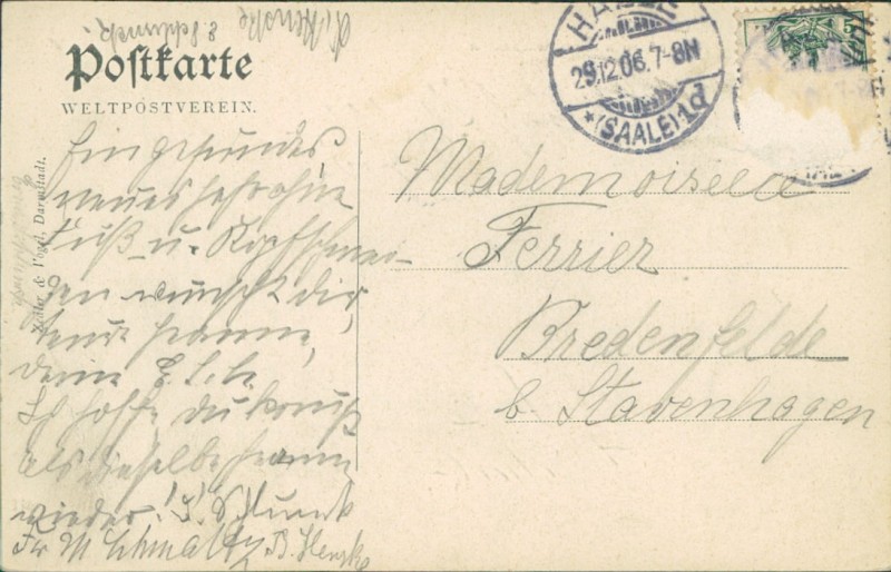 Alte Ansichtskarte aus Halle (Saale), gelaufen am 29.12.1906 von Halle (Saale) nach Bredenfelde.
